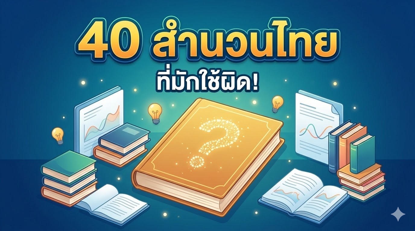 สำนวนไทยหลายสิบสำนวนถูกใช้ผิดความหมายกันมาหลายชั่วอายุคน จนบางสำนวนคนรุ่นใหม่แทบไม่รู้ว่าความหมายจริงๆ คืออะไร บทความนี้รวม 40 สำนวนที่คนไทยมักเข้าใจผิดบ่อยที่สุด พร้อมอธิบายความหมายที่ถูกต้อง ตัวอย่างประโยค และที่มาที่คุณอาจไม่เคยรู้